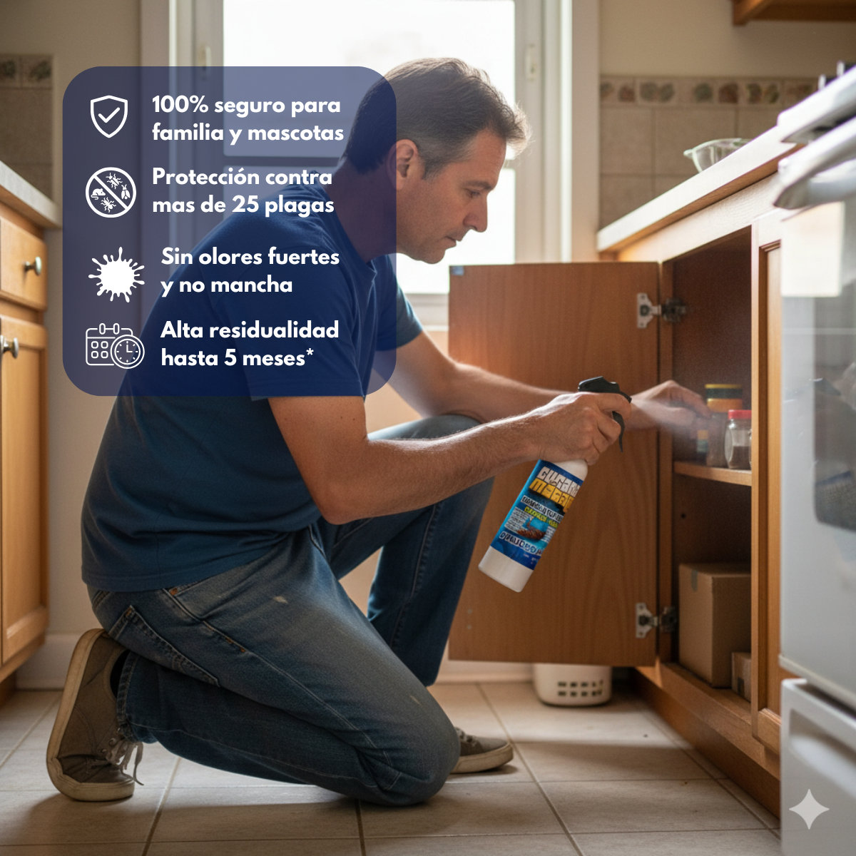 Este no es un insecticida cualquiera. Cucara Matala es un escudo invisible contra cucarachas, hormigas, arañas, ciempiés, chinches, alacranes y más de 25 plagas rastreras.