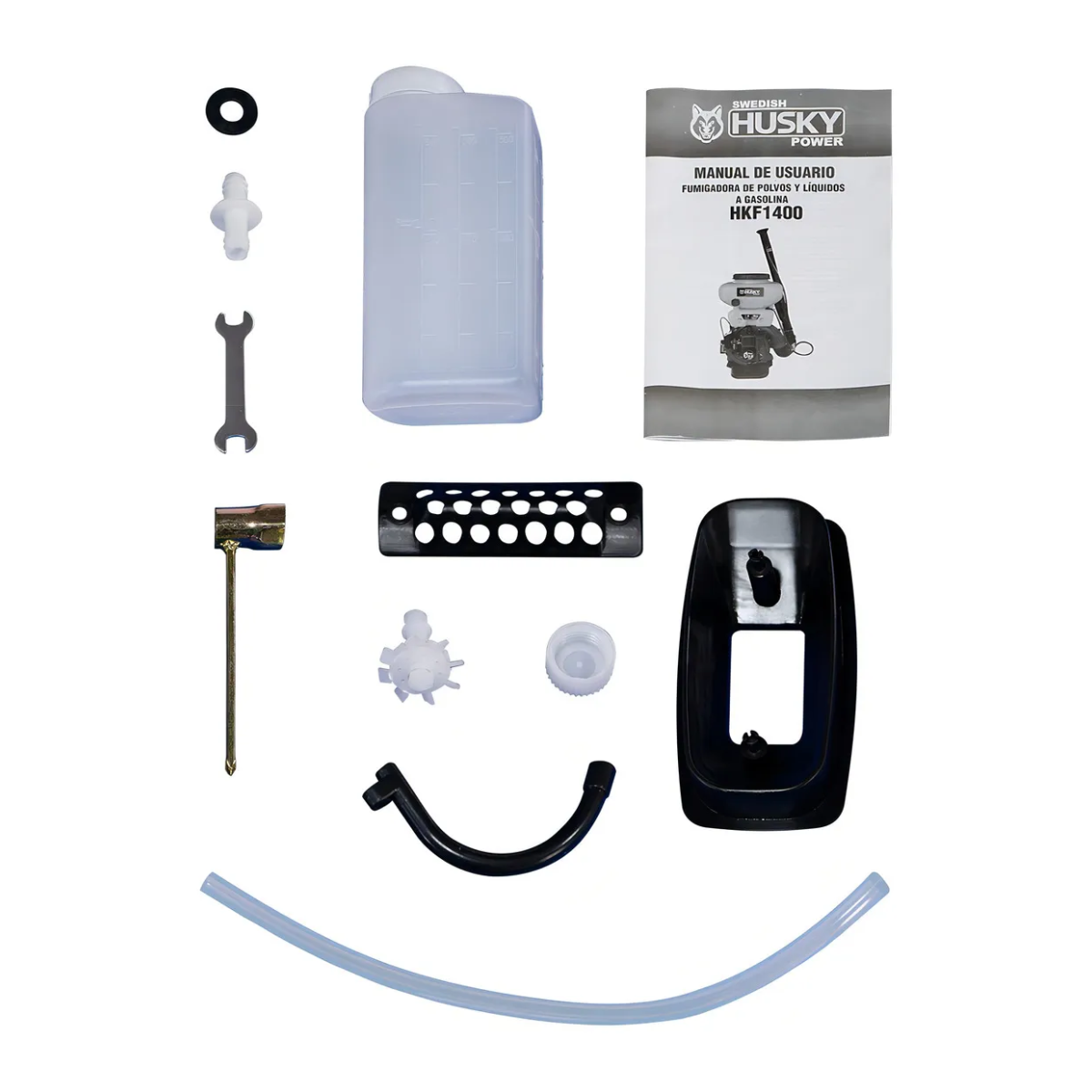 Lleva tus tareas de fumigación al siguiente nivel con la fumigadora de motor a gasolina SWEDISH HUSKY POWER. Equipada con un potente motor de 2.5 HP y 2 tiempos, esta motofumigadora de 14 litros está diseñada para el uso agrícola rudo. Su turbina de alto volumen de aire te permite alcanzar hasta 12 metros de distancia horizontal, ideal para proteger eficientemente cultivos de cítricos, caña de azúcar y maíz.