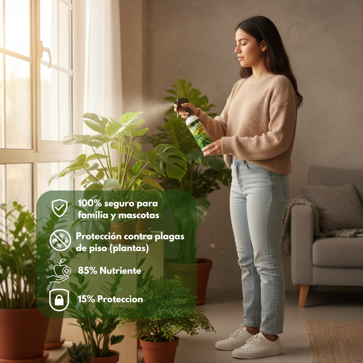 ¿Tus plantas andan tristes, llenas de bichos o con las hojas medio gachas? Sana Sana es el compita que necesitan. Es un nutriente-insecticida que alimenta, fortalece y defiende tus plantas de las plagas de piso más comunes (esas que llegan calladitas y hacen su desmadre).